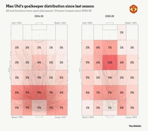 尽管如此,上赛季曼联门将绝大多数时间还是以短传为主。本赛季,短传和长传的比例是均衡的五五开。而且随着拉门斯的到来,这一趋势似乎只朝着一个方向发展。