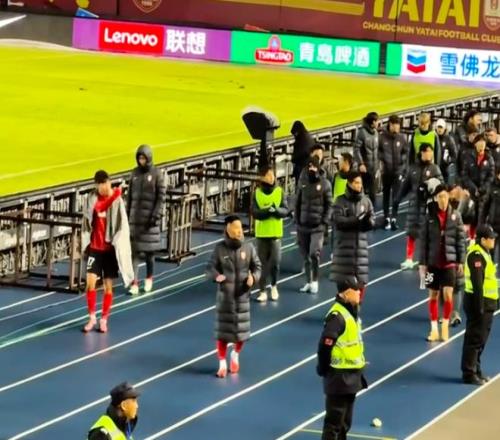 或许是对于球队7轮不胜的表现不满,再加上本场0-4的溃败后基本丧失了最后的保级希望。在赛后谢场时,长春亚泰球迷极度失望,他们也将怒火和矛头对准本场表现糟糕的贺一然。