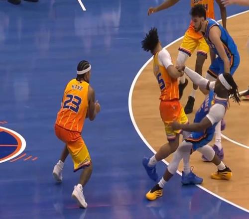 第四节决战,克尼普尔运球借挡拆,45度自信干拔出手三分命中,小米切尔接球突破,迎着防守高弧度抛投打进2+1,立马回应。锡昂·詹姆斯迎着防守强投三分命中,KJ-辛普森连续中距离跳投命中,黄蜂一波流将分差缩小至14分,只可惜时间所剩无几,最终,雷霆客场109-96轻松击败黄蜂,豪取5连胜。