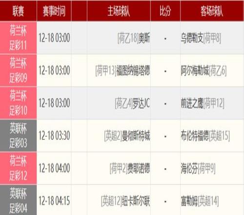 其他赛事比分: